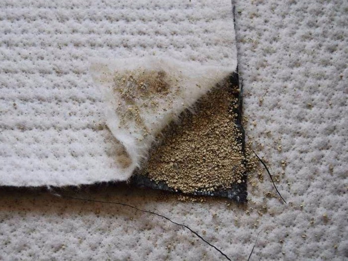 膨潤(rùn)防水毯是一種用于人工湖泊水景、垃圾填埋場(chǎng)、地下車庫(kù)、樓花園、水池、油庫(kù)化學(xué)品堆場(chǎng)等防滲漏的土工合成材料,它是由高膨脹性的鈉基膨潤(rùn)土填充在特制的復(fù)合土工布和無(wú)紡布之間,用針刺法制成的膨潤(rùn)土防滲墊可形成許多小的纖維空間,是膨潤(rùn)土顆粒不能像一個(gè)方向流動(dòng),遇水時(shí)在墊內(nèi)形成均勻高密度的膠狀防水層,有效的防止水的滲漏。膨潤(rùn)土防水毯按生產(chǎn)工藝可分為:針刺法鈉基膨潤(rùn)土防水毯、針刺覆膜法鈉基膨潤(rùn)土防水毯以膠粘法鈉基膨潤(rùn)土防水毯。 針刺覆膜法鈉基膨潤(rùn)土防水毯,是在針刺鈉基膨潤(rùn)土防水毯的非織造土工布的外表面上復(fù)合一層高密度聚乙烯土工膜。